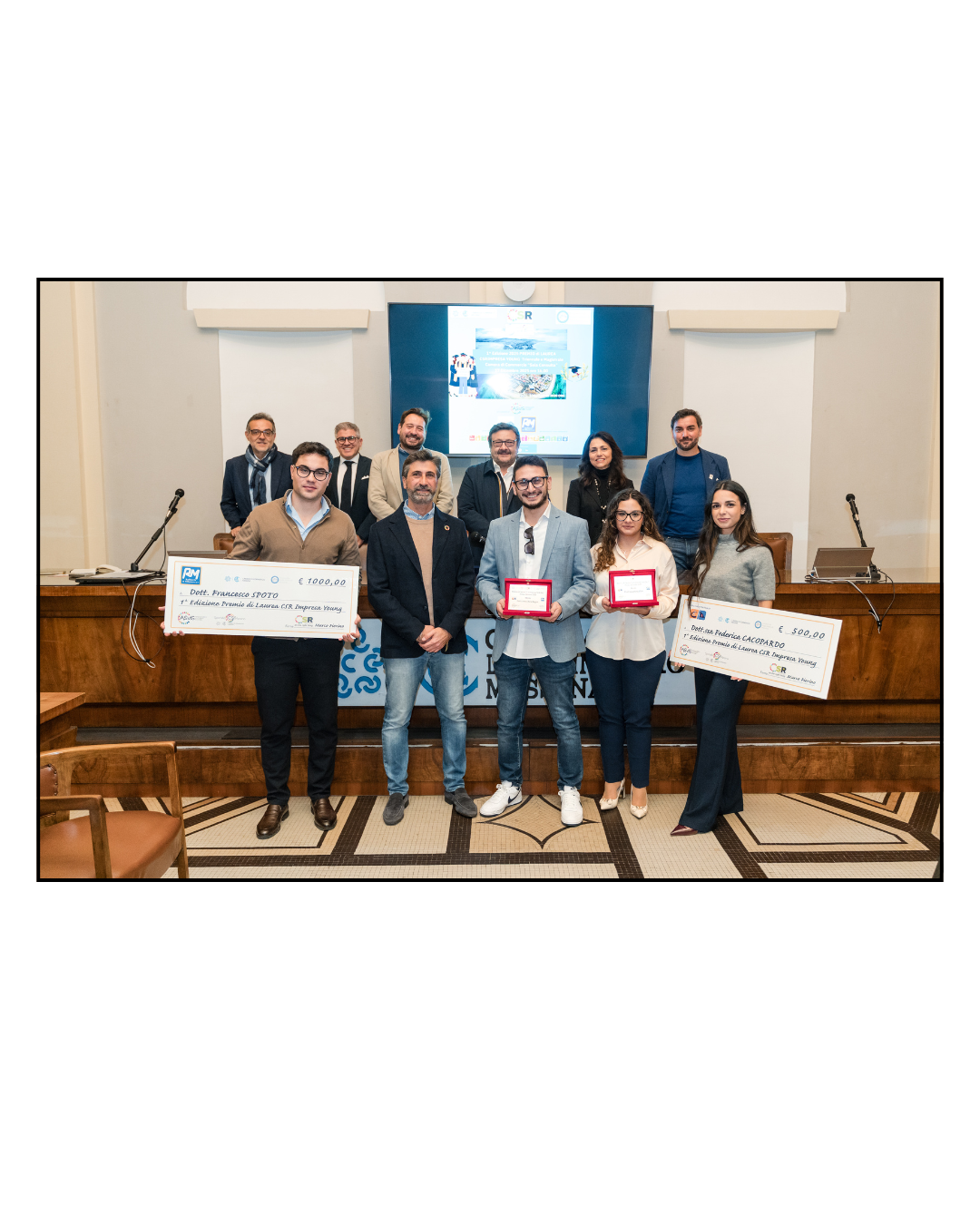 Sono Francesco Spoto e Lorenzo Ruggeri, rispettivamente primo e secondo qualificato per la laurea magistrale e Federica Cacopardo e Irene Pitì, rispettivamente prima e seconda qualificata per la laurea triennale, gli studenti vincitori della I edizione del Premio “Csrimpresa Young”, indetto dall’associazione Csrimpresa Aps Ets, in collaborazione con lo Sportello Csr della Camera di commercio e con il patrocinio dell’Ente camerale, dell’Università e di Alleanza italiana per lo sviluppo sostenibile.